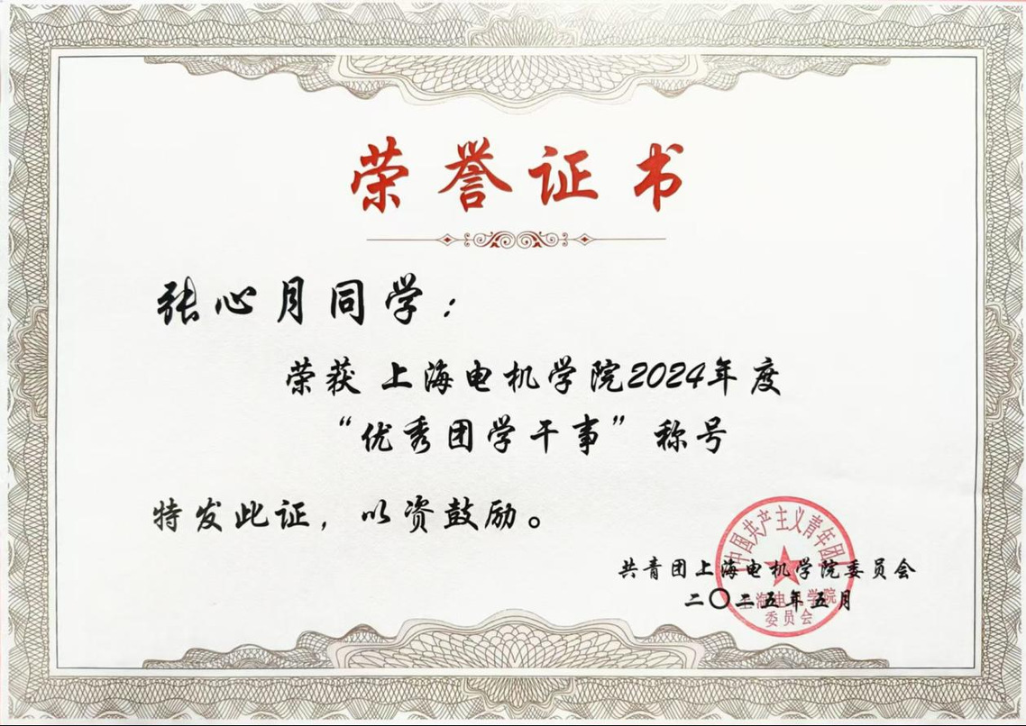 在爱党爱国方面,张心月积极向党组织靠拢,参观一大会址、雷锋馆等红色基地,学习党的历史;不仅在“青马工程”新任团干部培训班中表现优异,还在“青春心向党”集体舞大赛中用肢体语言诠释五四精神,弘扬红色文化。曾参加上海电机学院学生代表大会,现任第七届学生常任代表委员会委员,为学校的发展建言献策。