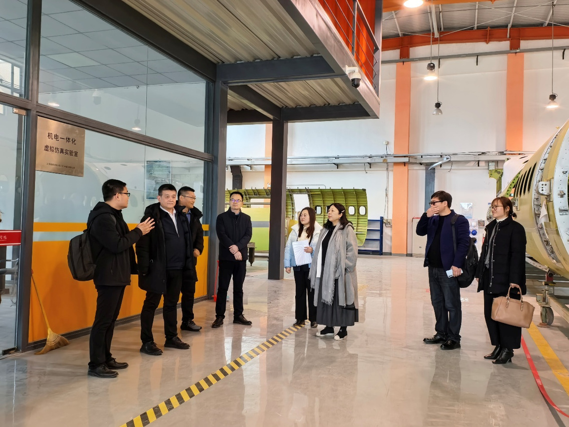 座谈开始前,与会嘉宾共同参观了我校相关实验室,实地了解学校在航空航天制造、运维、测试验证等领域的实践教学平台与科研条件。
