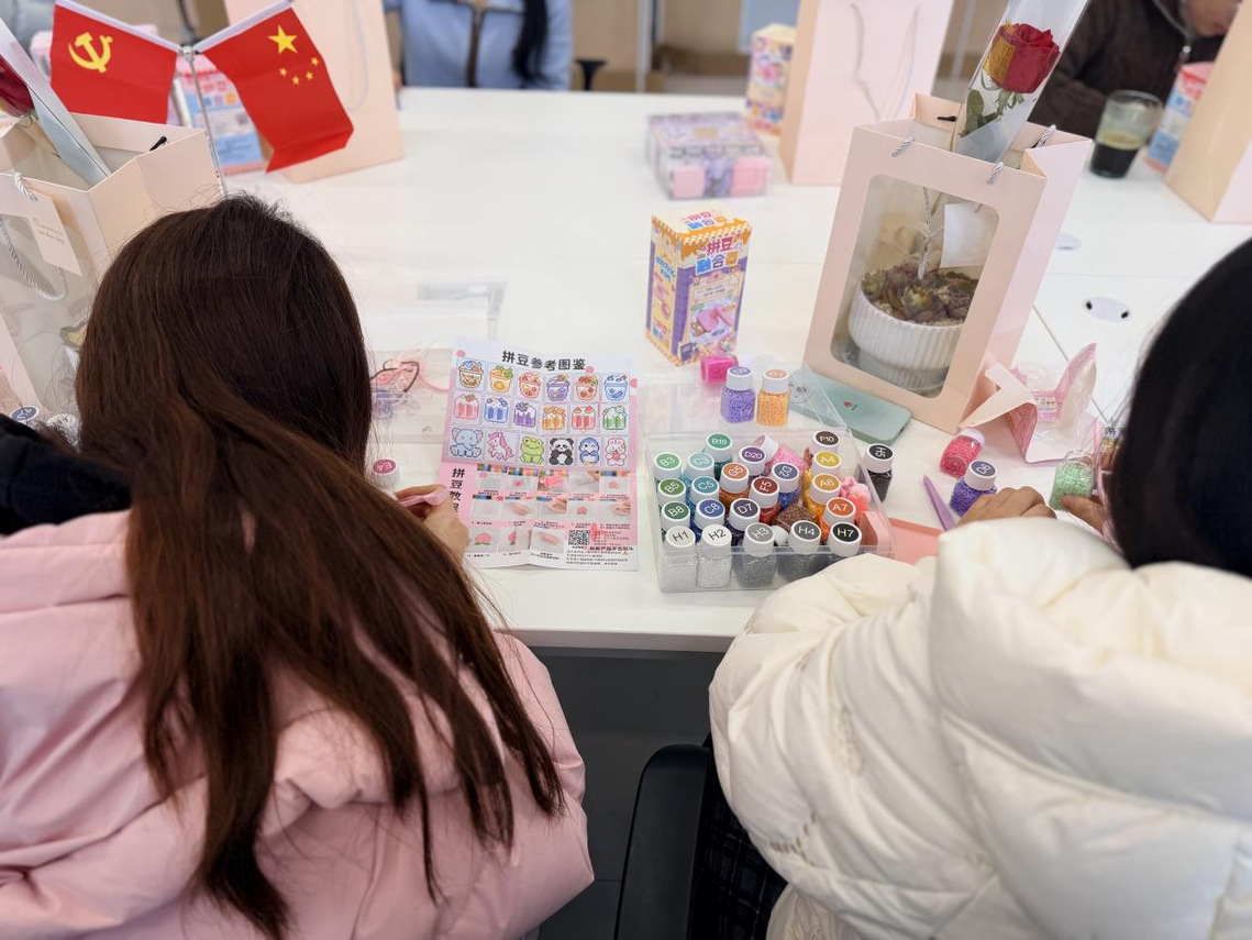 活动伊始,航空学院党总支书记苏庆刚向全体女教师致以节日的问候和美好的祝福,感谢大家在学院教学、科研、管理等各项工作中所付出的辛勤努力和作出的重要贡献。随后,女教师们兴致勃勃地投入到手作拼豆的创作中。大家挑选自己喜爱的色彩和图案,专注地将一颗颗小豆子拼搭成充满创意与心意的作品,在指尖的协作与色彩的碰撞中,暂时放下了工作的忙碌,尽情享受着手工创作带来的宁静与乐趣。